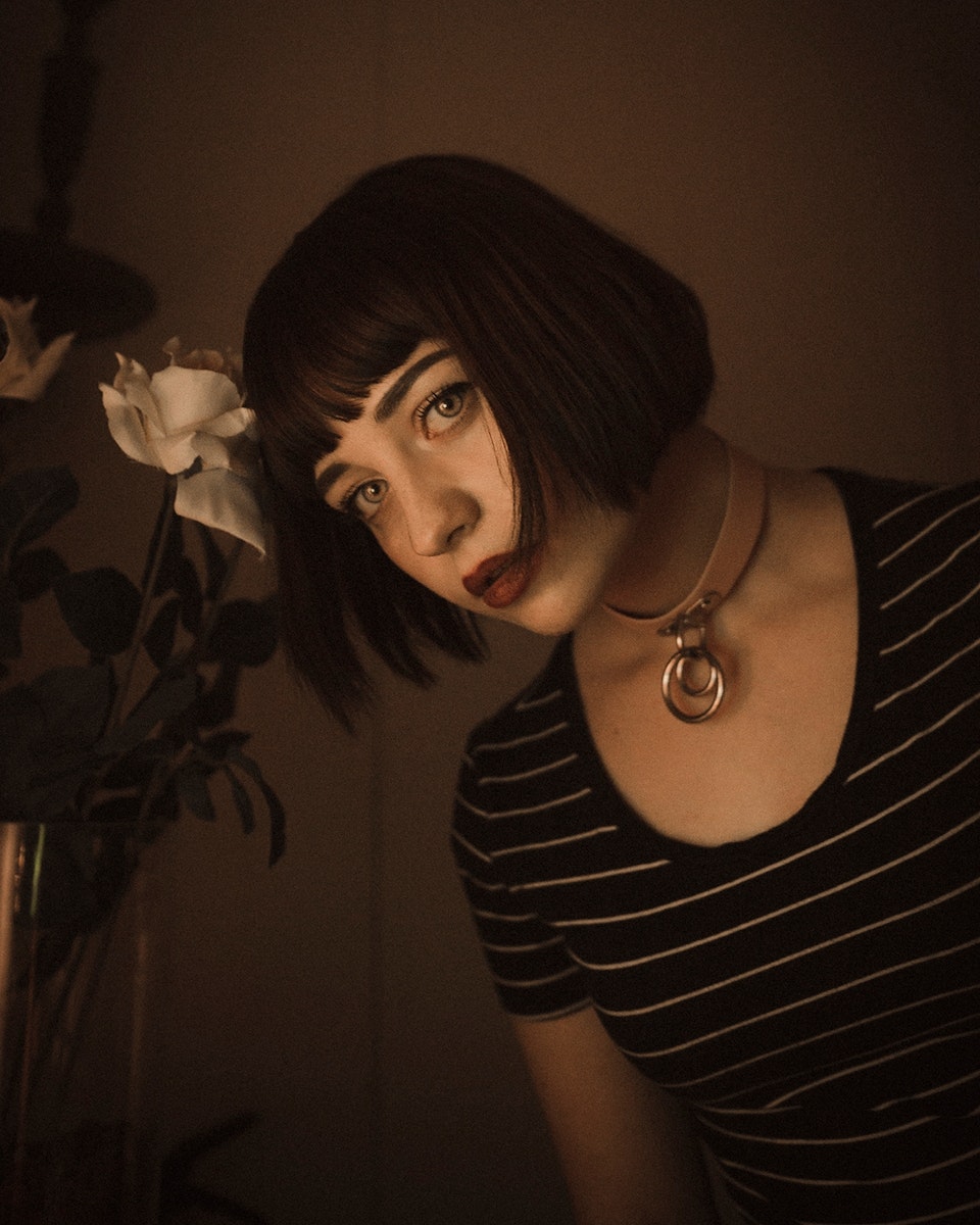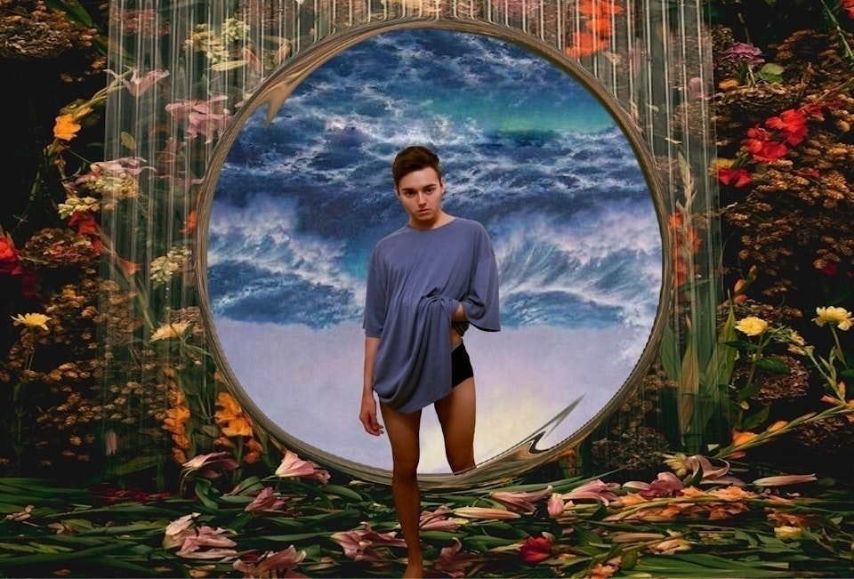"I created this self portrait with the intent to express a more sensual side of me than most people are used to seeing. I find that waves and water symbolize the fluidity of sexuality, and view flowers as a way to symbolize the feeling of sensuality."