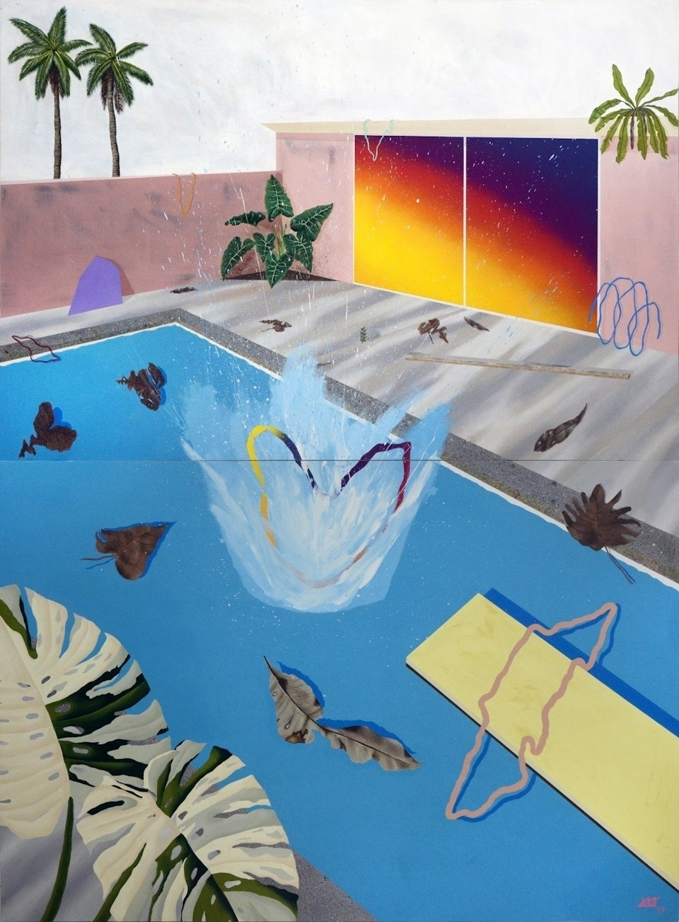"The concept of the work is about time. We all know that David Hockney's 'A Bigger Splash' is a very clean depiction of an ideal and calm American lifestyle. But what would the surroundings look like now if it was neglected for so some time?"